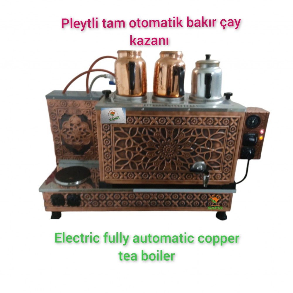 3 gözlü ( 3 demlikli ) Tam Otomatik Elektrikli ve Pleytli Bakır Çay Kazanı.